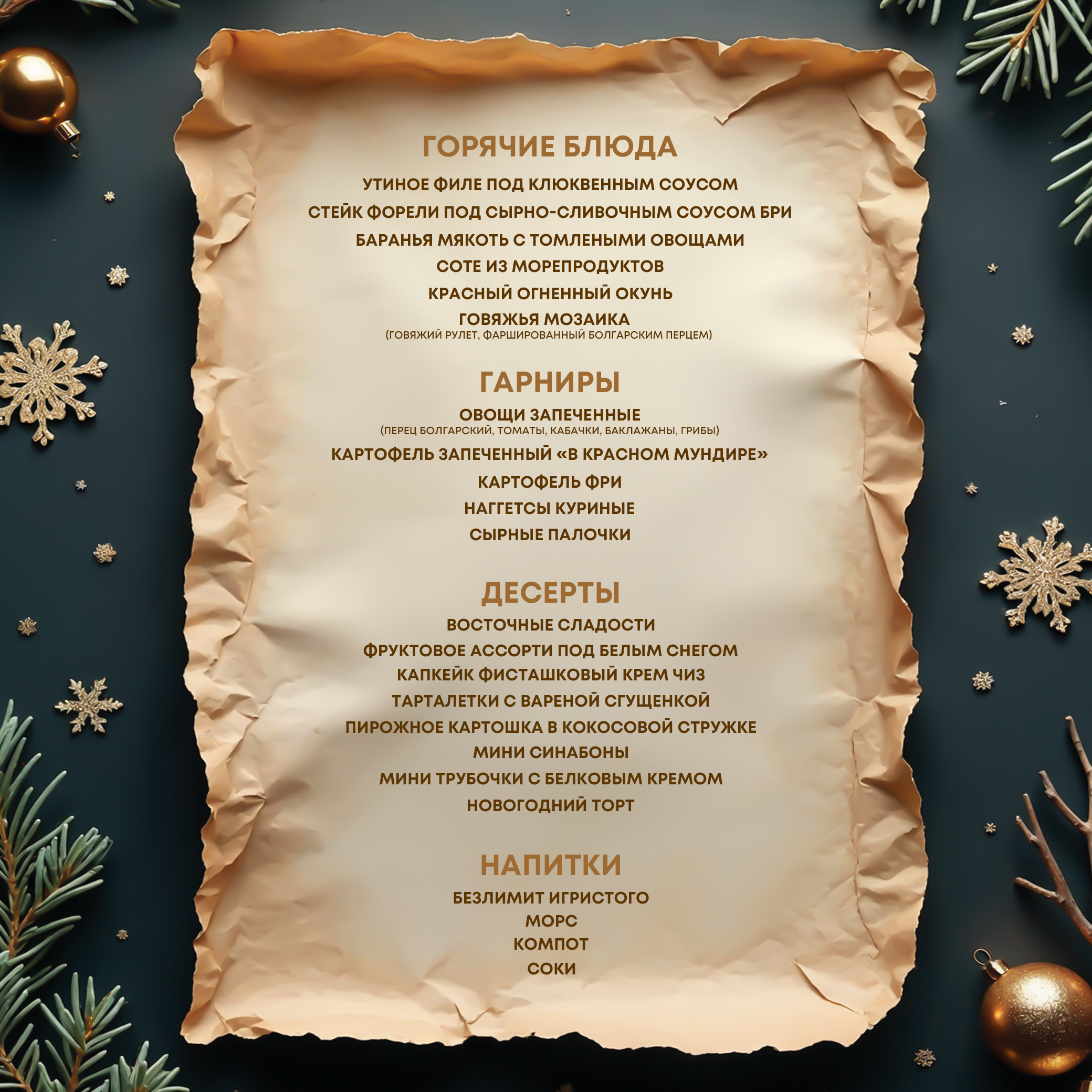 - Изысканный новогодний шведский стол с авторскими блюдами от шеф-повара;